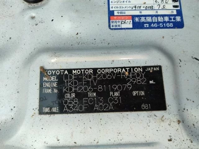 Номер кузоваKDH206V