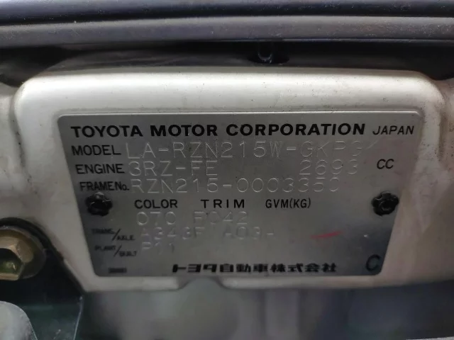 Номер кузоваRZN215W