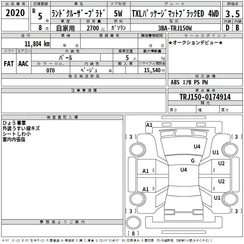 Номер кузоваTRJ150W