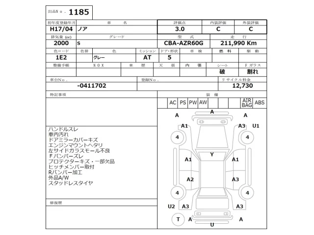 Номер кузоваAZR60G