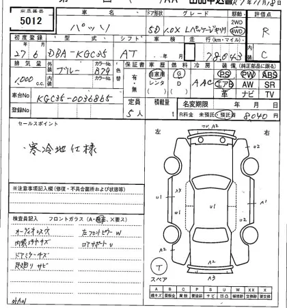 Аукцион SAA Sapporo Дата аукциона 18.11.2025 Год2015 Тип кузоваХэтчбек Номер кузоваKGC35 Объем1000 сс Трансмиссия Автомат Привод FULLTIME4WD Пробег 78 000 км Цветсиний ОценкаR