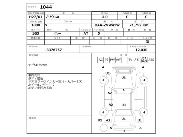 Toyota PRIUS ALPHA Лот 1044, торги от 02.02.2026