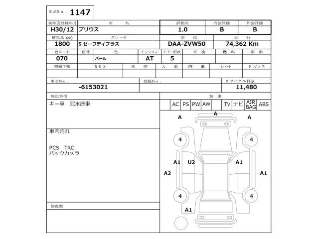 Toyota PRIUS Лот 1147, торги от 17.11.2025