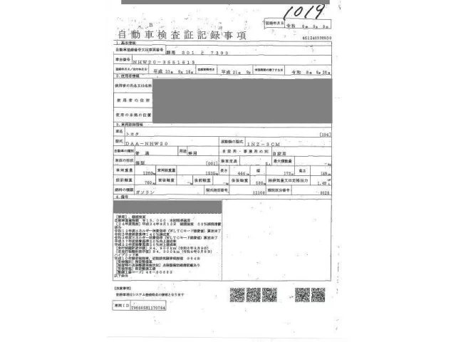 Номер кузоваNHW20