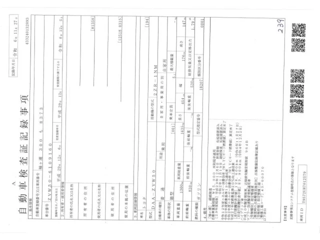 Номер кузоваZVW50