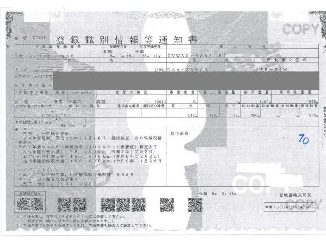 Номер кузоваZVW30