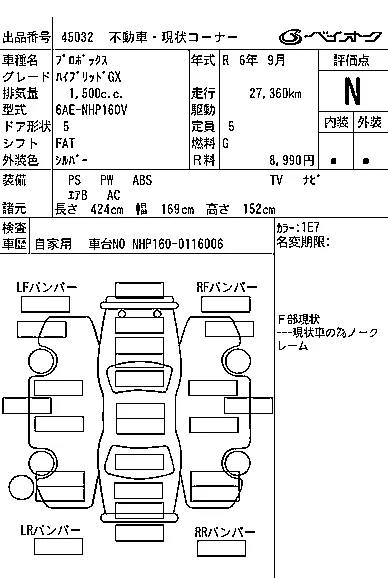 Номер кузоваNHP160V