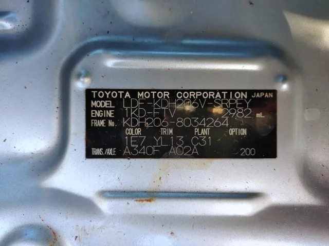Номер кузоваKDH206V
