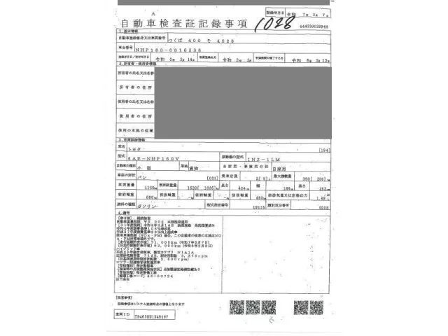 Номер кузоваNHP160V