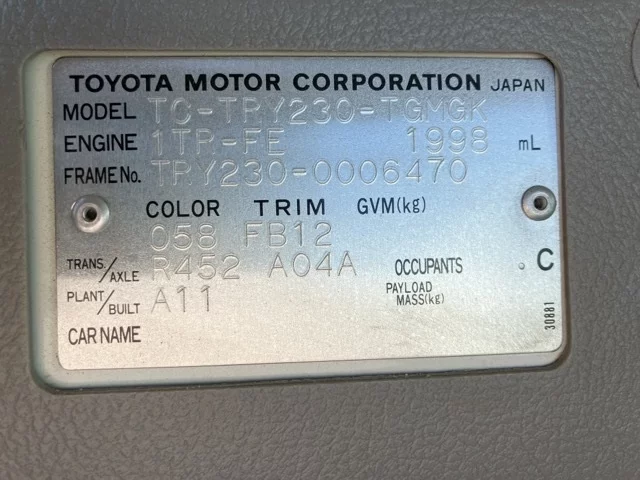 Номер кузоваTRY230