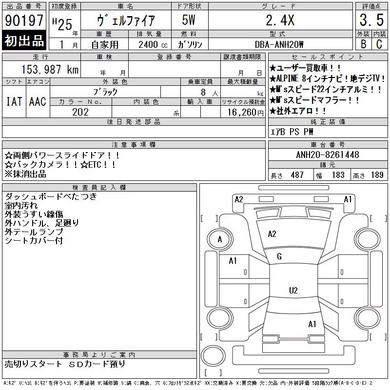 Toyota VELLFIRE Лот 90197, торги от 24.12.2025