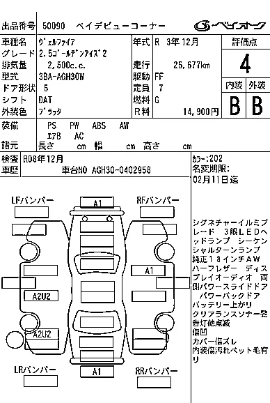 Toyota VELLFIRE Лот 50090, торги от 14.01.2026