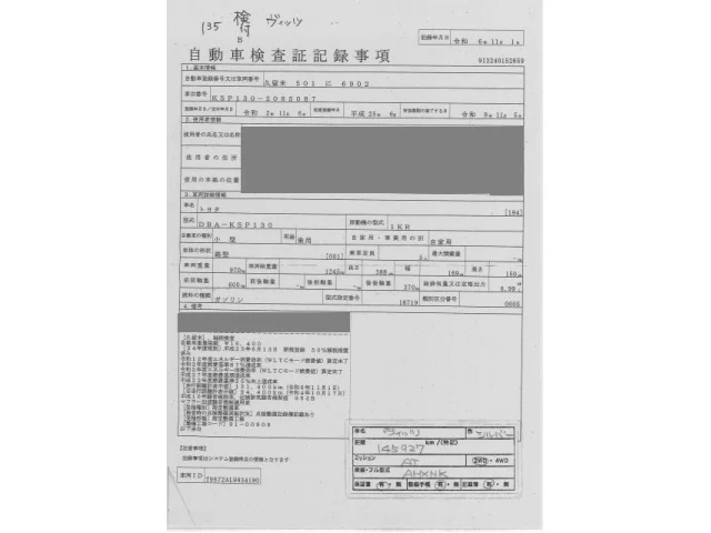 Аукцион ORIX Fukuoka Nyusatsu Дата аукциона 18.11.2025 Год2013 Тип кузоваХэтчбек Номер кузоваKSP130 Объем1000 сс Трансмиссия Автомат Привод Автомат Пробег 146 000 км Цветсеребро Оценка3
