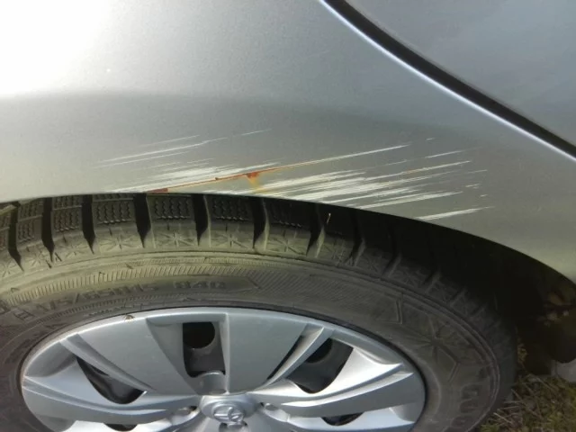 В3Большая вмятина с царапиной (размером с локоть)