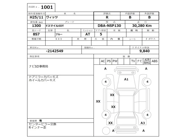 Toyota VITZ Лот 1001, торги от 30.03.2026