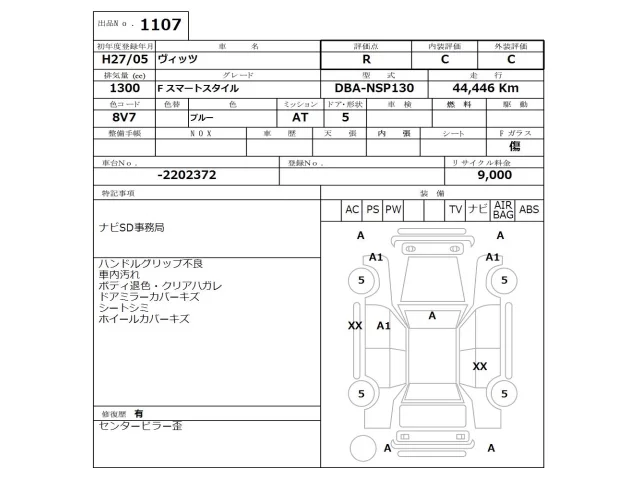 Аукцион NISSAN Osaka Дата аукциона 06.04.2026 Год2015 Тип кузоваХэтчбек Номер кузоваNSP130 Объем1300 сс Трансмиссия Автомат Привод Автомат Пробег 44 000 км Цветсиний ОценкаR