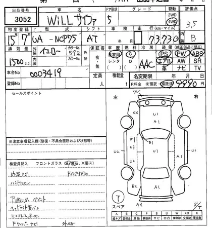 Аукцион SAA Sapporo Дата аукциона 10.02.2026 Год2003 Номер кузоваNCP75 Объем1500 сс Трансмиссия Автомат Привод FULLTIME4WD Пробег 74 000 км Цветжелтый Оценка3.5