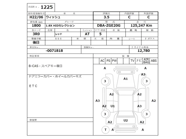 Toyota WISH Лот 1225, торги от 23.03.2026