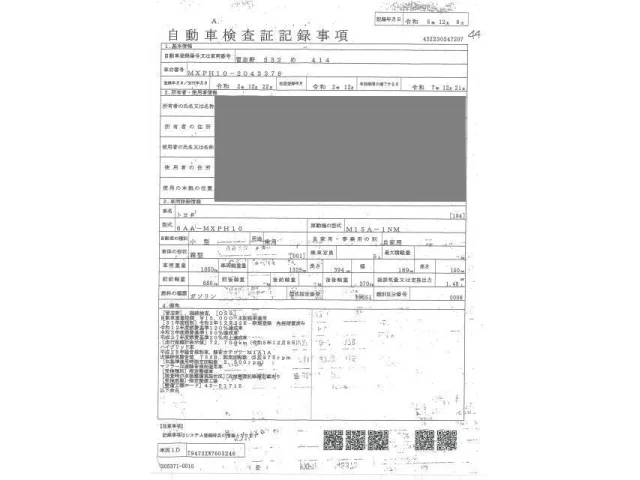 Номер кузоваMXPH10